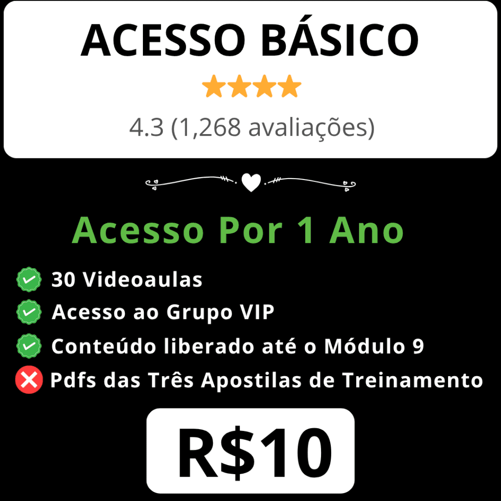 O acesso ao curso online é vitalício! Isso significa que você pode aprender no seu ritmo, revisar o material sempre que precisar e retornar às aulas quando desejar. Seu investimento no conhecimento está garantido por tempo indeterminado, permitindo que você absorva tudo o que o curso tem a oferecer sem pressa. Sinta-se confiante e aproveite ao máximo essa oportunidade de crescimento!